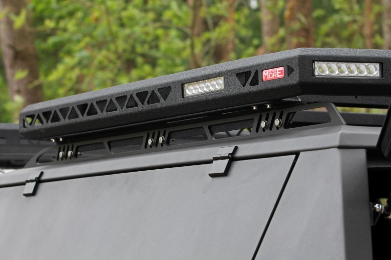 Pevná strecha MorE 4×4 pre Mitsubishi L200 je vyrobená z 3 mm hrubého hliníka a má samonosnú konštrukciu. Jej horná doska a mohutné rohové stĺpiky poskytujú pevnú základňu pre montáž strešných nosičov alebo stanov na hardtop, čo je pri kompozitných konštrukciách často nemožné kvôli ich nedostatočnej pevnosti. Na uľahčenie montáže strešných nosičov alebo stanov na pevnú strechu sú koľajnice vybavené montážnymi otvormi, ktoré umožňujú nastavenie skrutkovacích komponentov smerom nahor a nadol.