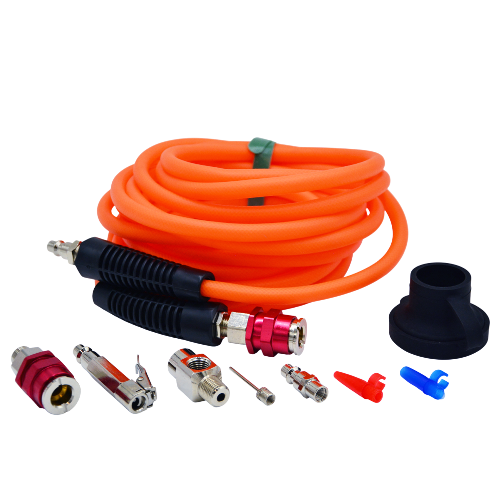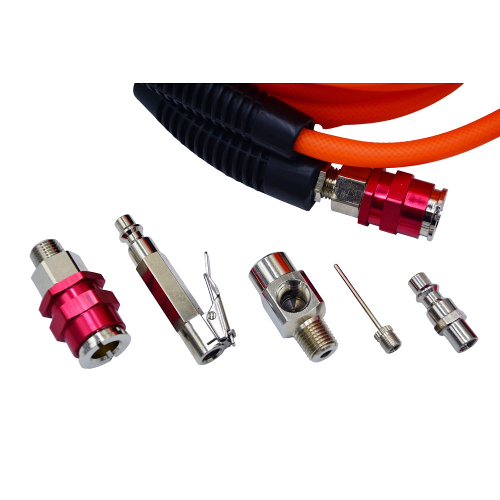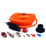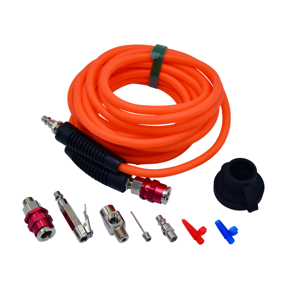 Kompletná sada príslušenstva – všetko, čo potrebujete na pripojenie ku kompresoru, v jednej súprave.